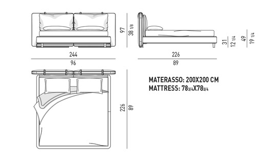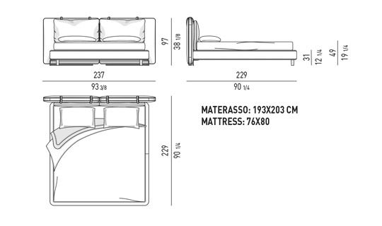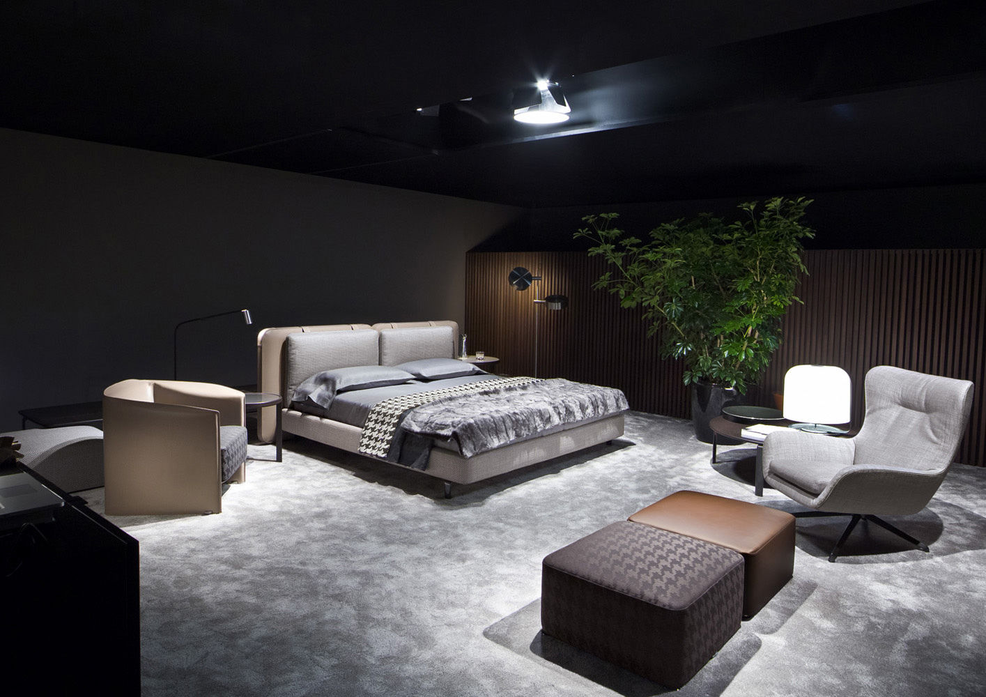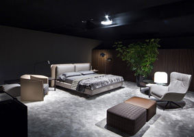 Tatlin-Soft睡床的床头采用皮革包覆,银色为深褐色、烟草色、深棕色、黑色,靠垫采用与床框同样的面料。