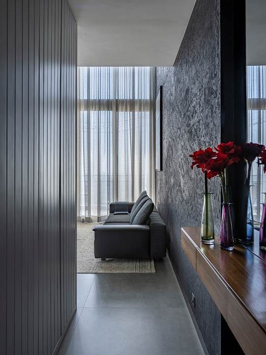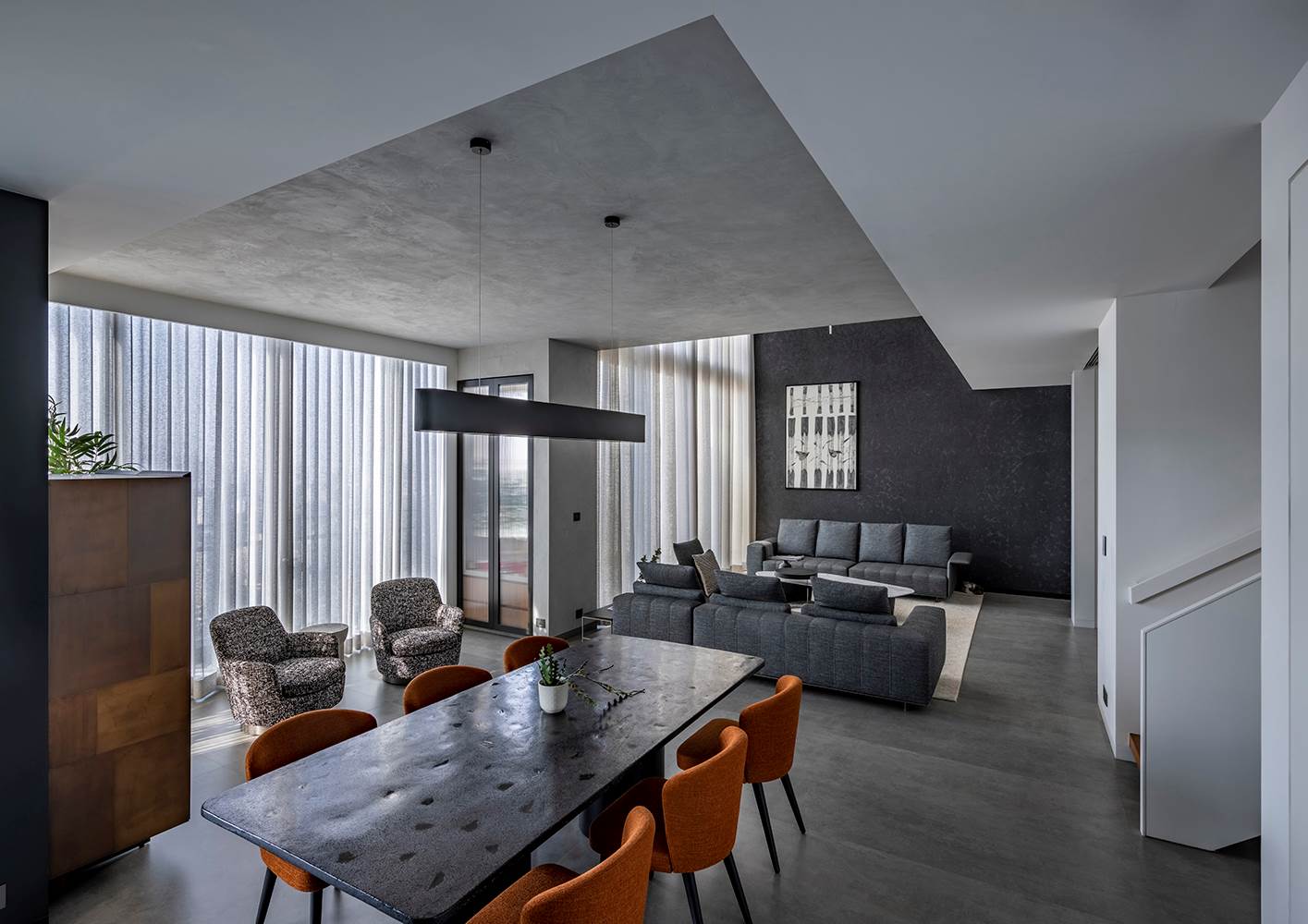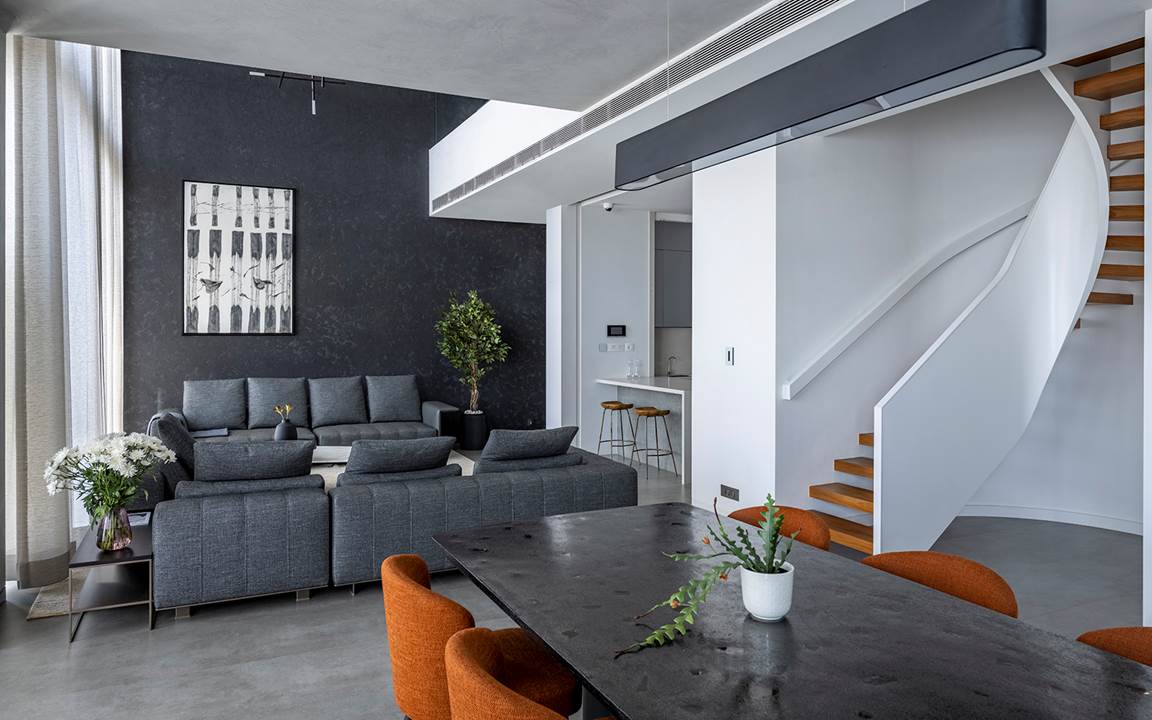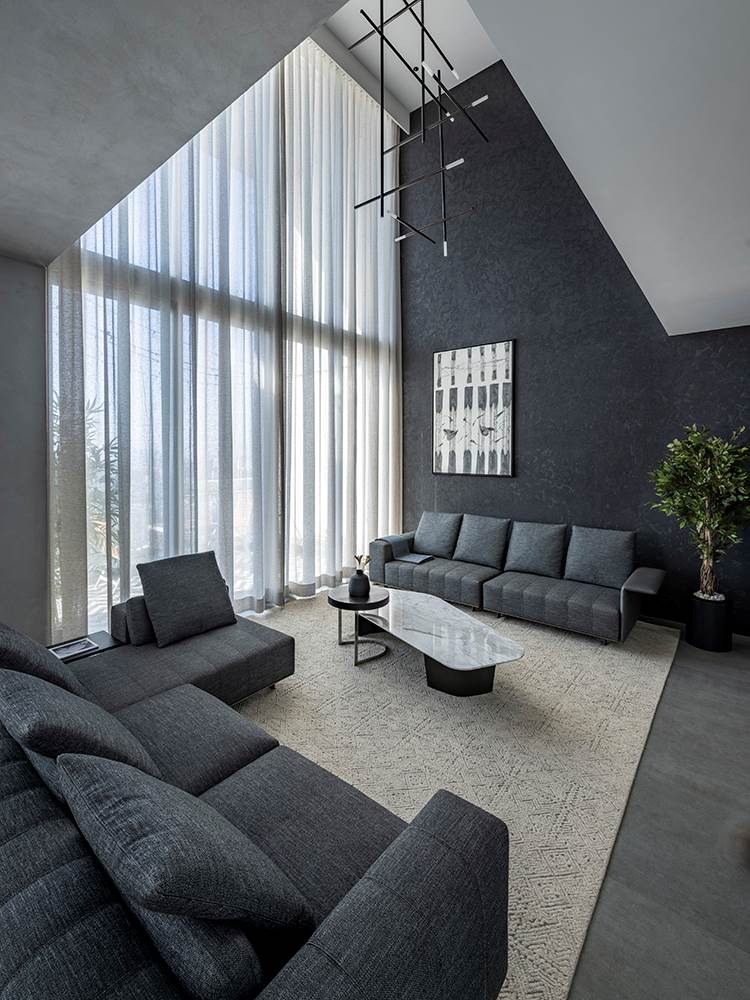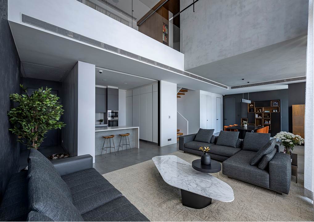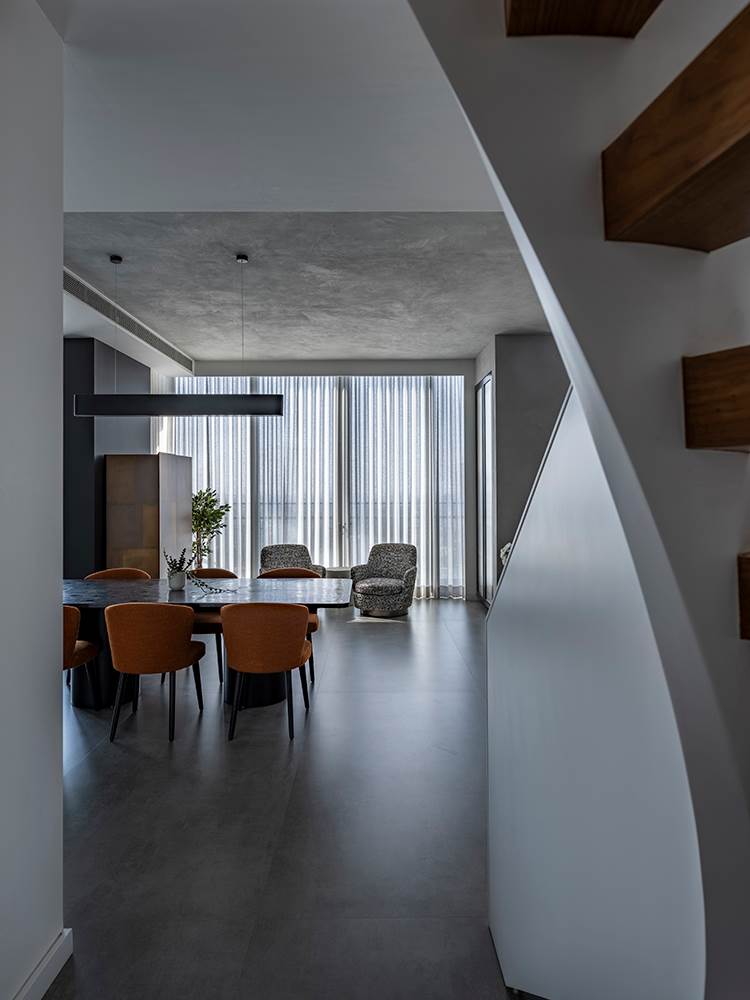 室内设计采用极简风格,与建筑的现代感保持一致,并通过精致考究的细节和宁静优雅的灰色调来加以丰富。