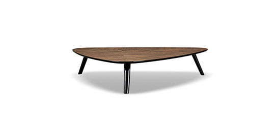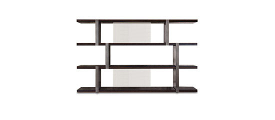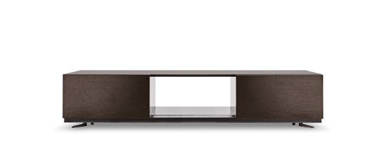 Structure in MDF assembled using mitered folding, Oak veneer with open-pore Tobacco stain finish, Oak veneer with openpore Moka lacquer finish; Oak veneer with open pore Grey stain finish; Oak veneer with open-pore Black lacquer finish and Ebony composite veneer with matt open-pore lacquer.