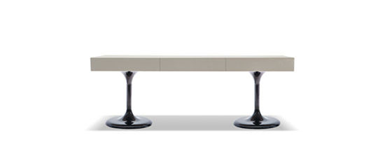 Molded aluminum die-cast feet (exclusive design by Minotti Studio) with extra-glossy, anti-touch Pewter coloredfinish. Protective Hytrel® glide (soft, scratch-proof rubber).