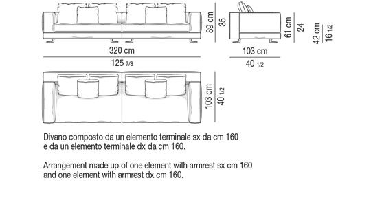 SOFÀ DEPTH CM 103 - SOFÀ ELEMENT 1 ARMREST CM 160