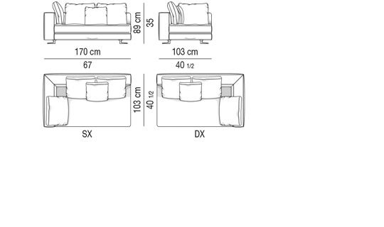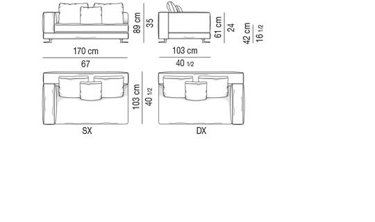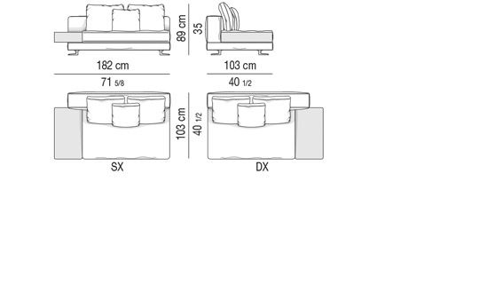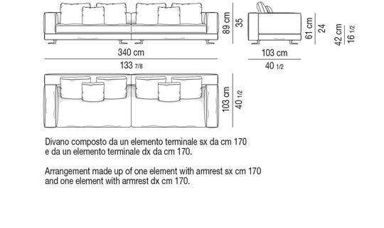 SOFÀ DEPTH CM 103 - SOFÀ ELEMENT 1 ARMREST CM 170