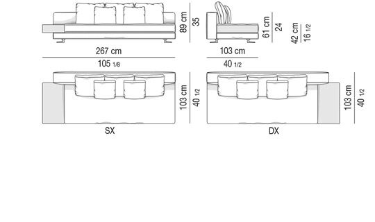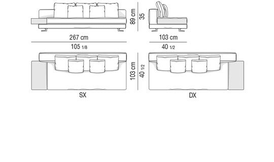 DEPTH CM 103 - ELEMENT 1 ARMREST CM 267 - TOP CM 44x82