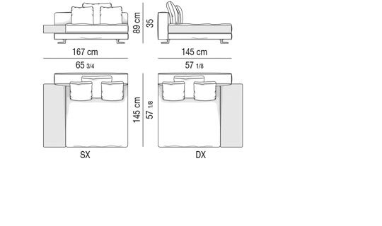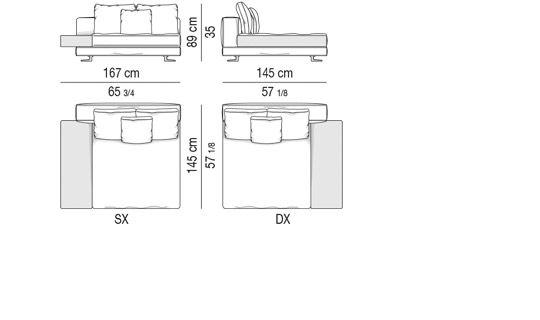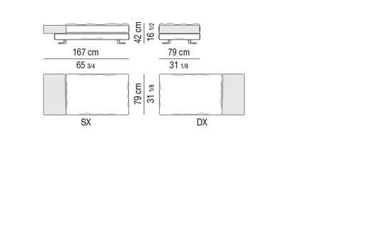 DEPTH CM 103 - CHAISE LONGUE 167x145 - TOP 44x120
