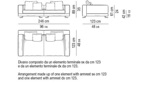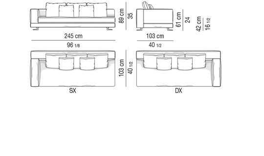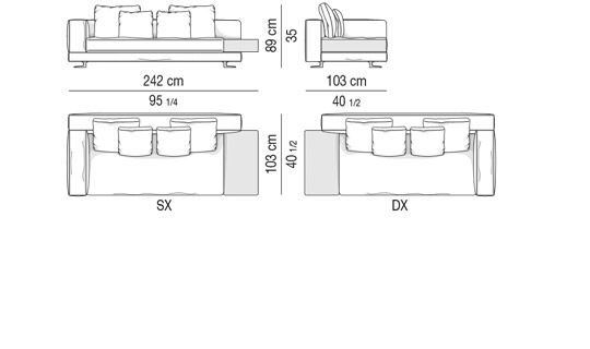 SOFÀ DEPTH CM 103 - SOFÀ ELEMENT 1 ARMREST CM 245