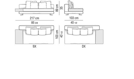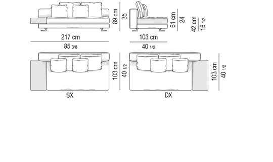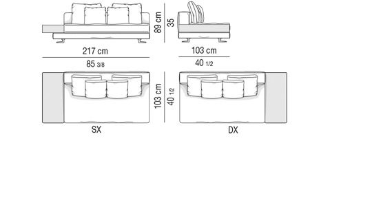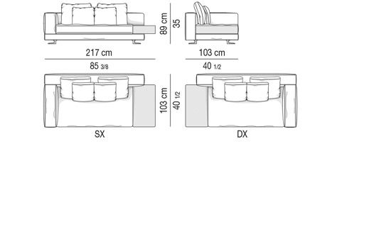 SOFÀ DEPTH CM 103 - SOFÀ CM 217 - TOP CM 44x103