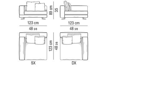 DEPTH CM 123 - ELEMENT WITH 1 ARMREST CM 220