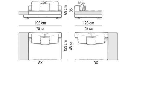 SOFA DEPTH CM 123 - SOFÀ CM 192 -TOP CM 44x123
