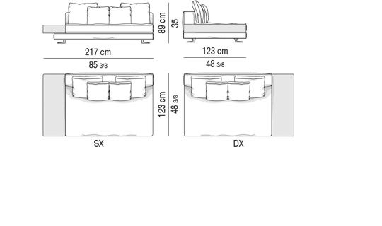 SOFA DEPTH CM 123 - SOFÀ CM 217 -TOP CM 44x123