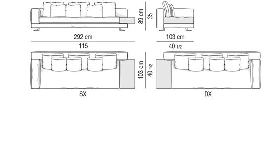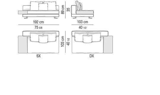 SOFÀ DEPTH CM 103 - SOFÀ ELEMENT 1 ARMREST CM 195