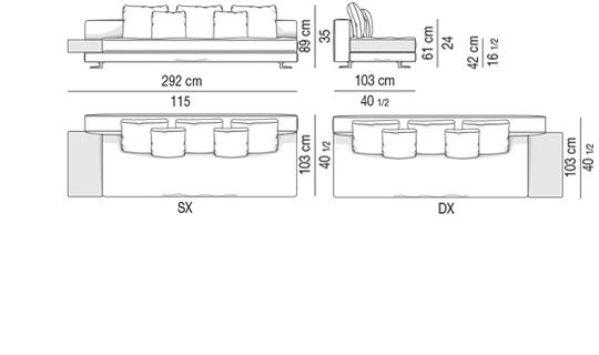 DEPTH CM 103 - ELEMENT WITH 1 ARMREST CM 292 - TOP CM 44x82
