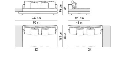SOFA DEPTH CM 123 - SOFÀ CM 242 -TOP CM 44x123