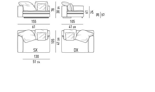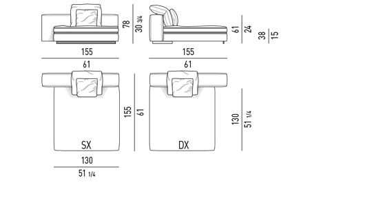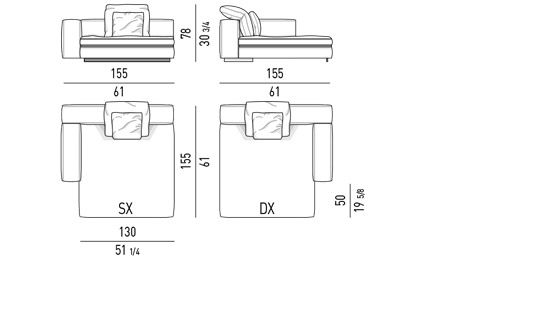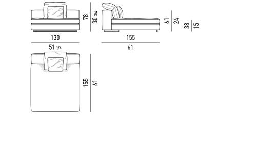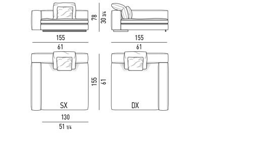 CHAISE-LONGUE CM 155X155 - ARMREST CM 80