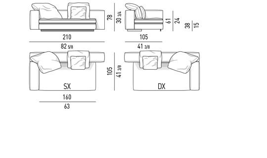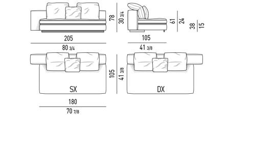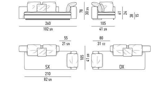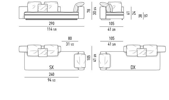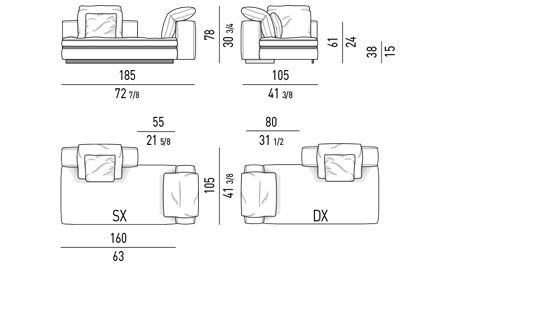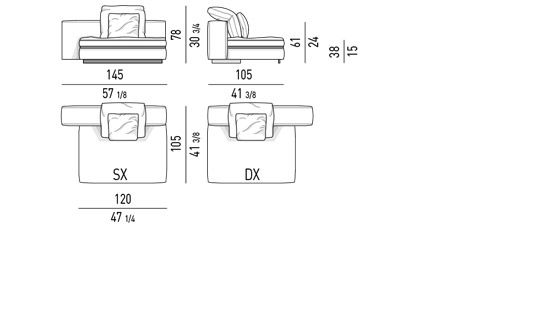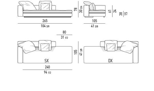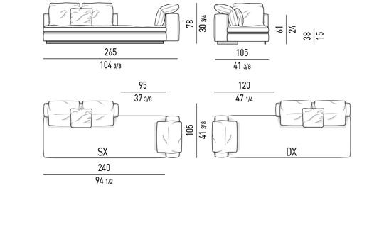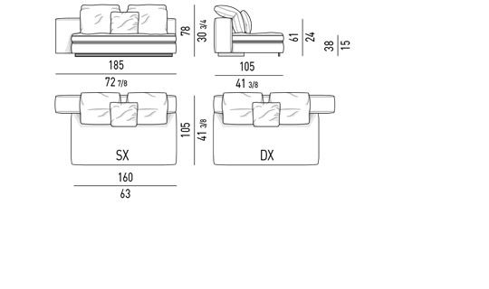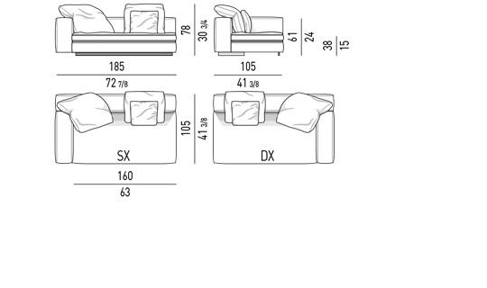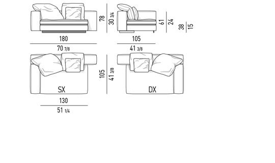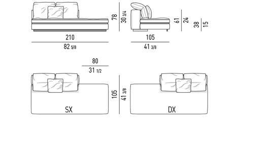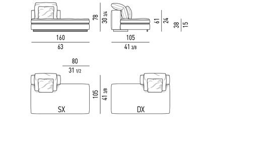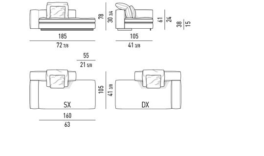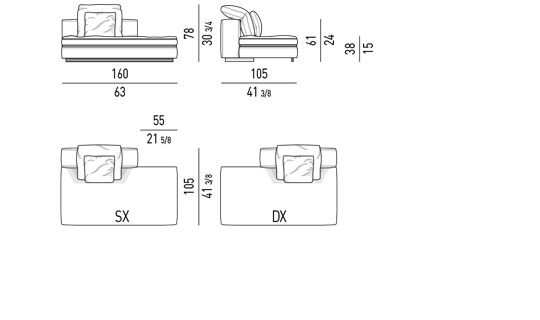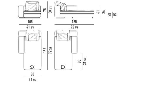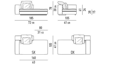 CHAISE-LONGUE CM 105X185 - ARMREST CM 80