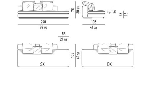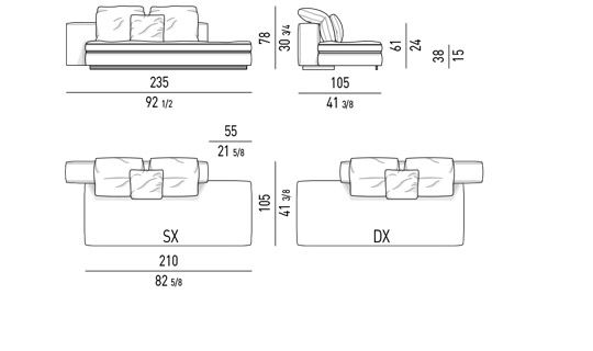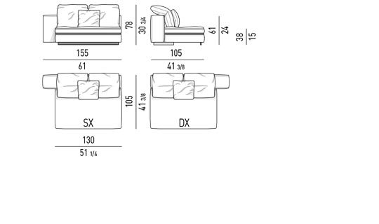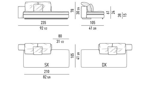 DAYBED ELEMENT CM 235 - BACKREST CM 155