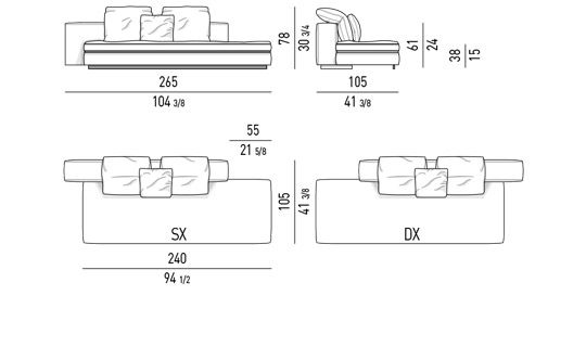 DAYBED ELEMENT CM 265 - BACKREST CM 145