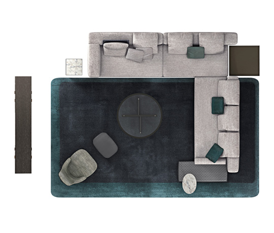 从“互补”元素的运用,到与 Elliott、Close 茶几及 Yang 矮凳的互动,Yang 沙发组合的百搭动感在多种组合方案中得以完美显现。此外,可将 Yang 矮凳放置于扶手位置,作为功能性十足的宽阔置物平面使用,亦可将其置于沙发前方,作为座椅的延伸部分,用于伸展双腿。