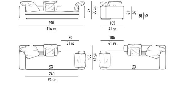 DAYBED-SOFA CM 290 - BACKREST CM 185