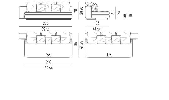 OPEN-END ELEMENT WITH 1 ARMREST CM 235 - BACKREST CM 155