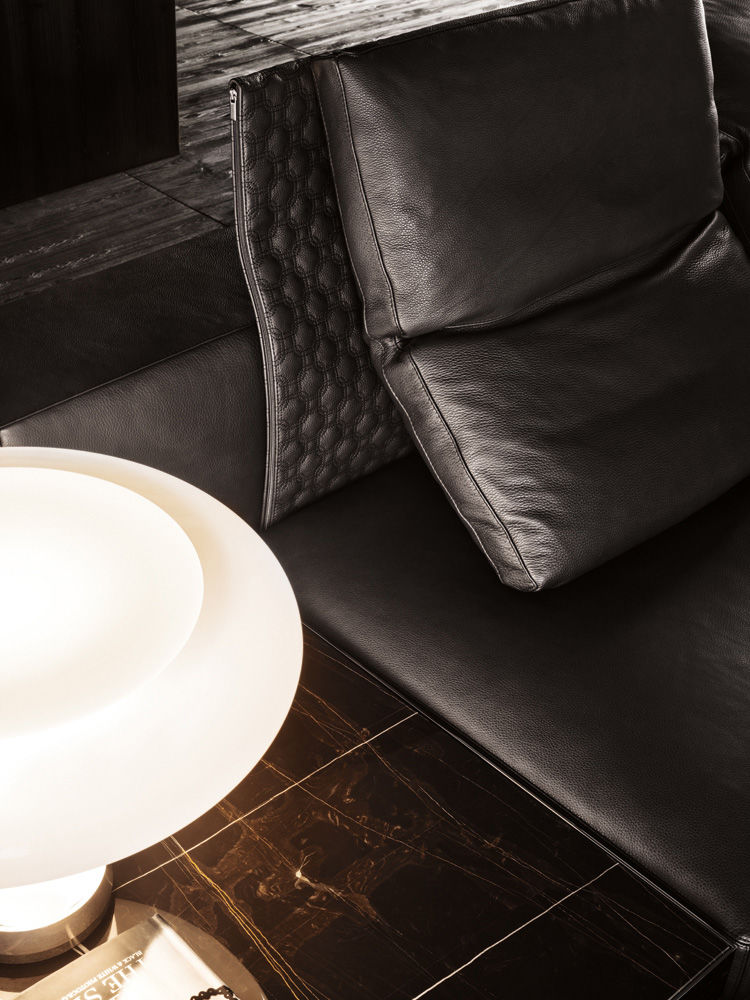 充满朝气与活力的沙发系列,运用几何造型元素玩味柔和的线条,采用不同寻常的方式来演绎虚与实。理性造型与自由组合形成对比,其中融入极具原创性的设计理念。Yang沙发系列面向希望为家居空间打造出柔美舒适氛围的年轻人,无论是在这里做自己最喜爱的活动,还是享受绝对放松的一刻,都可在此尽享休闲时光。Yang系列的造型特点在于“虚实相生”的特别元素,悬臂式的椅背搭配Yang沙发系列的圆垫椅和Close小桌,进一步提升多功能性。从集合各种元素的简单理念出发,打造多种多样的组合,同时,圆垫椅可以随心所欲地放在任何位置:不仅可用于延伸座椅的范围,还可作为舒适的垫脚软椅。Yang系列的严谨构架理念在底座的设计上也有所体现:前方部件由喷涂Peltro漆面的铝杆组成,这种表面加工方式让Yang沙发系列能够完美诠释各种不同的风格。Yang系列的头枕采用特别设计,旨在提供更为垂直的支撑,保证阅读和放松时的正确姿势。此外,精细的“Cambré”缝制设计使其别具一格,除了倚靠部件的绝佳功能性之外,一丝不苟的细节也为这款沙发平添一份雅致。