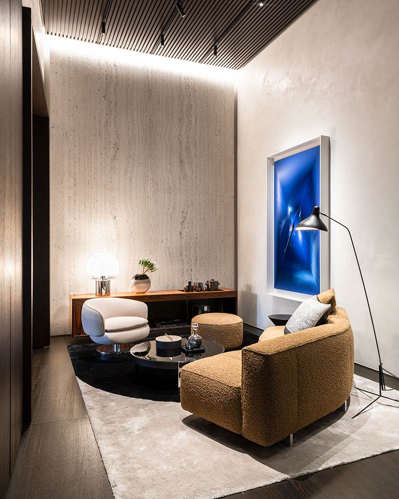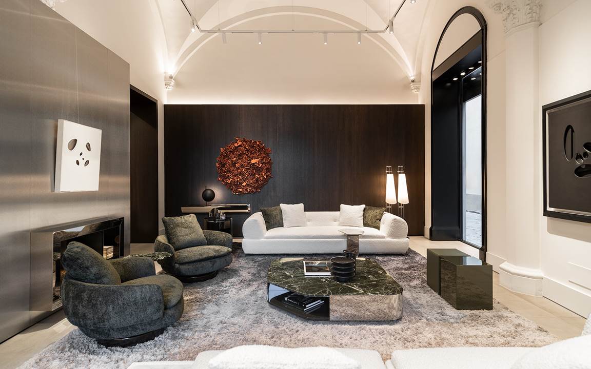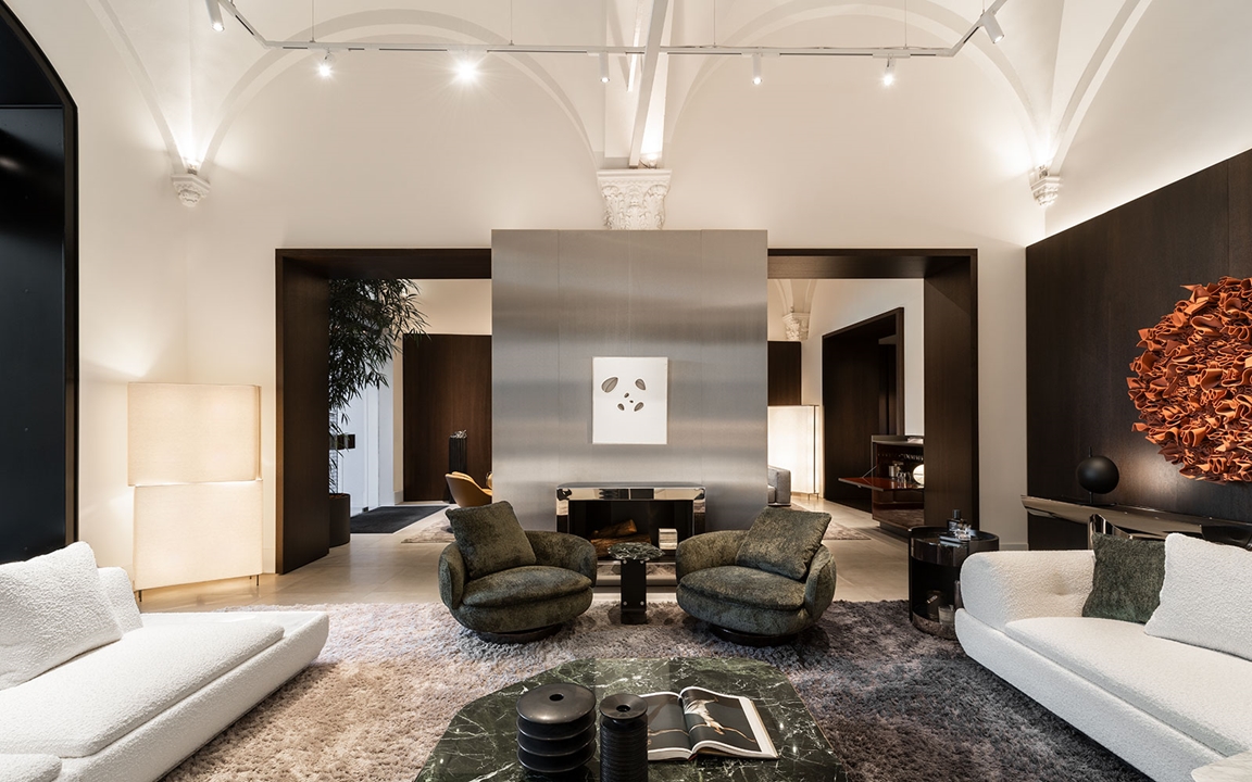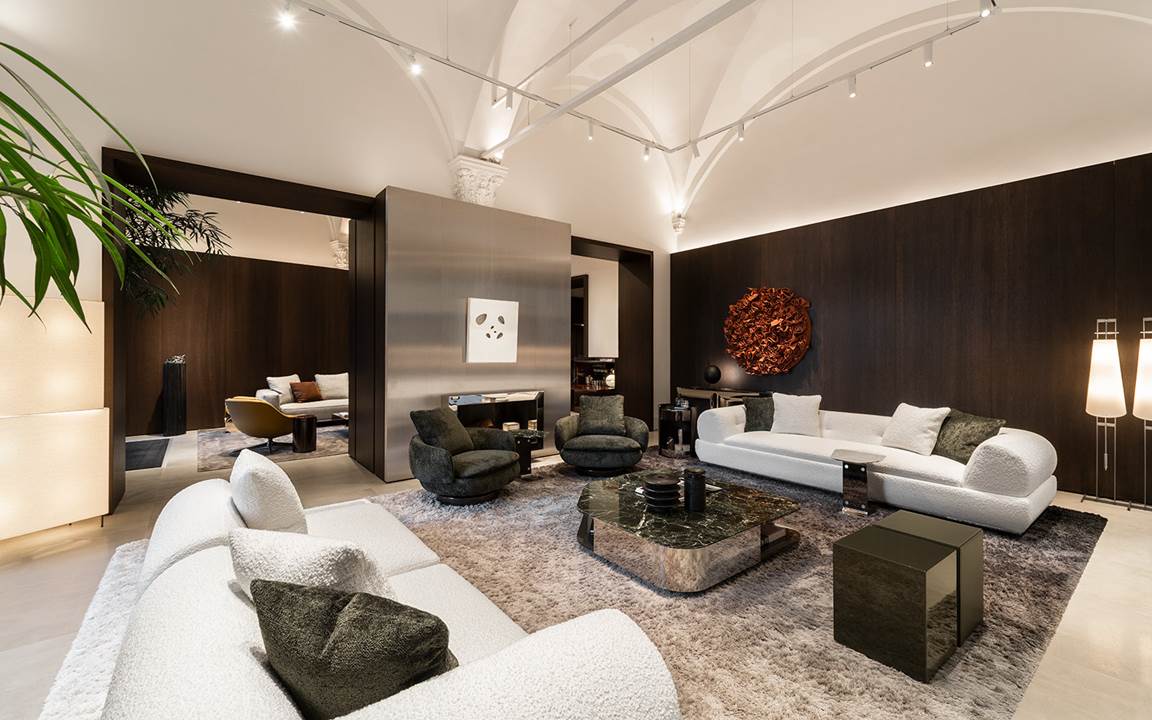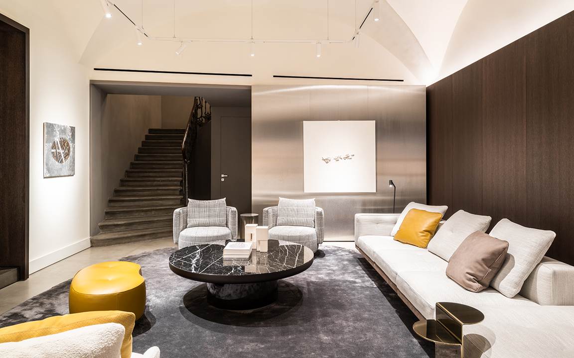 Der Flagship-Store Minotti Firenze by Belvedere gibt den Auftakt zu einer kulturellen Initiative mit dem Titel Spotlight on Art & Design in Zusammenarbeit mit der renommierten Galerie Tornabuoni Arte. In den Ausstellungsräumen auf der Piazza degli Strozzi werden die Neuheiten 2024 und einige Bestseller zusammen mit einer Auswahl zeitgenössischer Kunstwerke präsentiert.