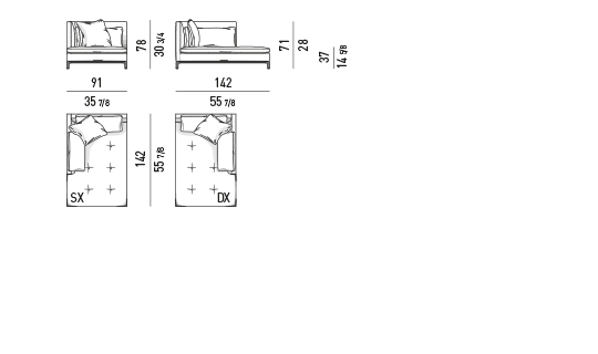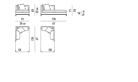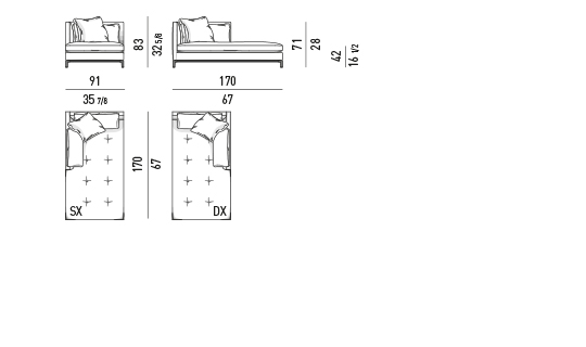 Zur Kollektion Andersen gehören auch Andersen Paolina, Chaiselongue mit Armlehne und Andersen Daybed, Chaiselongue ohne Armlehne. Beide zeichnen sich durch den bodenfreien Rahmen aus, die charakteristischen zinnfarbigen Füße aus Aluminiumdruckguss und das durchgehende Sitzkissen mit leichter Absteppung. Neben dem Modell von 142 cm, Andersen Paolina ist auch in einer variante von 170 cm erhältlich. Die essentielle Linie passt perfekt in alle Wohn- und Schlafräume.