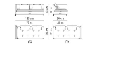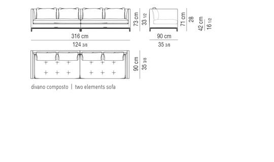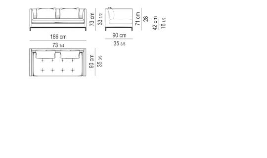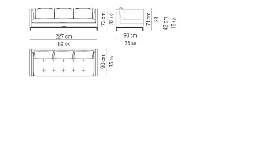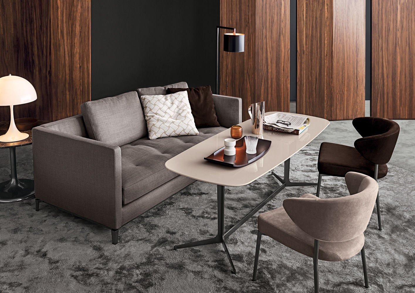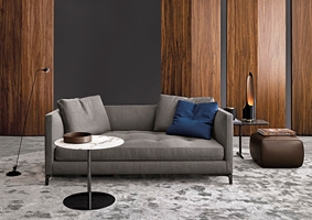 Die Sofas Andersen Slim sind auch in einer Variante mit auf 90 cm reduzierter Sitzflächentiefe erhältlich. Diese Lösung, gemeinsam mit den feinen Armlehnen, erlaubt die Realisierung von besonders raumsparenden Sofas, die sich spezifisch für Projekte von Aufenthalts- und Warteräumen, Direktionsbüros und Hotelsuiten eignen. Andersen Slim 90 zeichnet sich durch das glatte, durchgehende Sitzkissen aus, während Andersen Slim 90 Quilt ein durchgehendes Sitzkissen mit der klassischen Absteppung besitzt. Beide sind ausschließlich als bodenfreies Modell erhältlich.