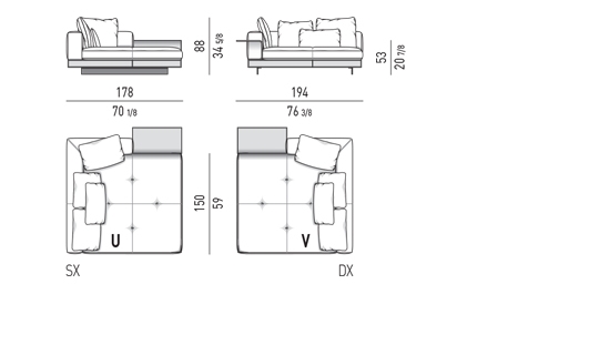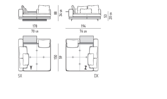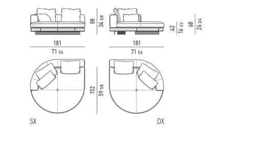 Die in den CAD Dateien angegebenen Abmessungen können leicht abweichen von den, im Datenblatt des Produkts angegebenen. N.B.: Die CAD Dateien auf der Webseite sind urheberrechtlich geschützt und sind ausschließliches Eigentum der Firma Minotti SpA. Die Benutzung dieser Dateien ist ausschließlich für Interior Design Projekte zugelassen. Jede andere Nutzung ist strengstens untersagt.