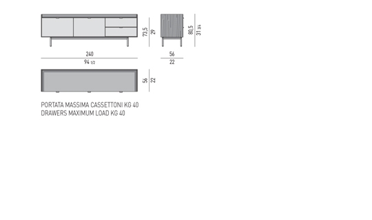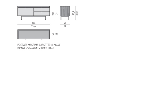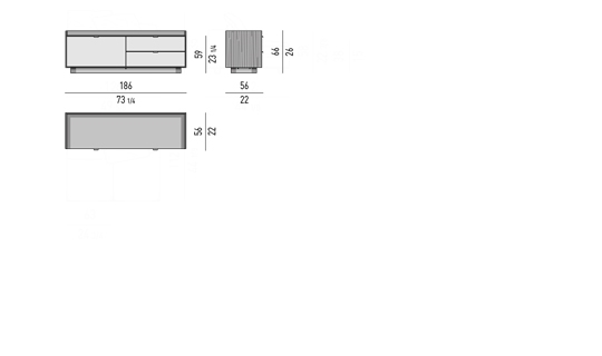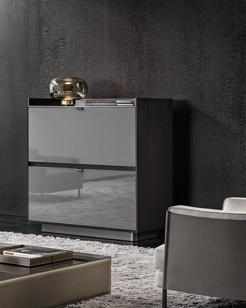 Darren ist in drei verschiedenen Ausführungen mit unterschiedlichen Abmessungen und Verwendungszwecken erhältlich, wodurch eine umfangreiche Produktpalette entsteht: von den Esszimmer- zu den Wohnzimmermöbeln, von den Schubladenelementen bis hin zu den Nachttischen.