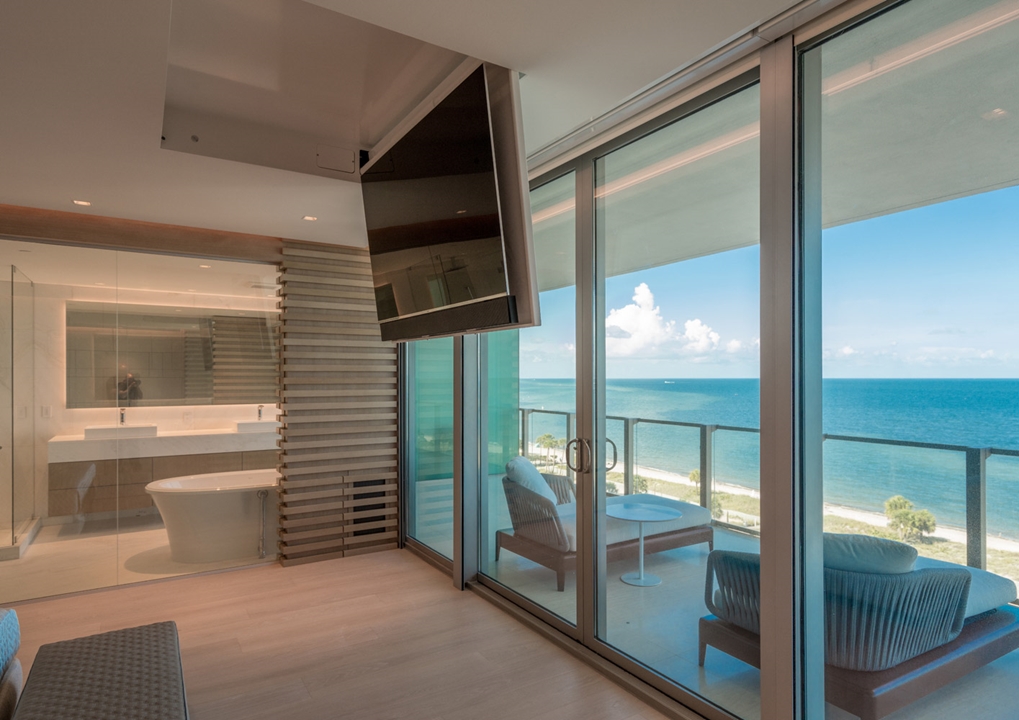 Die Wohnung, mit beneidenswerter Sicht auf die Biscayne Bay, liegt in einem luxuriösen Wohnkomplex mit dem Namen Oceana.