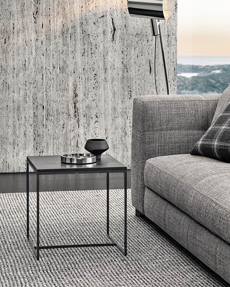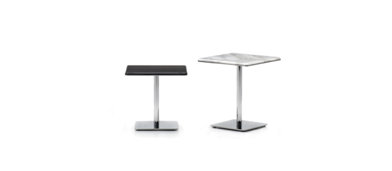 Liam gibt es in verschiedenen Größen und mit quadratischer oder rechteckiger Form. So lassen sich die Elemente, auch durch das Kombinieren von Tischplatten aus unterschiedlichen Materialien, in verschiedene Konfigurationen integrieren.
