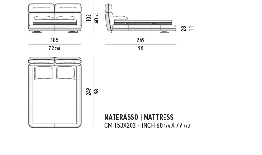 Bett QUEEN SIZE 185x249xh102 cm