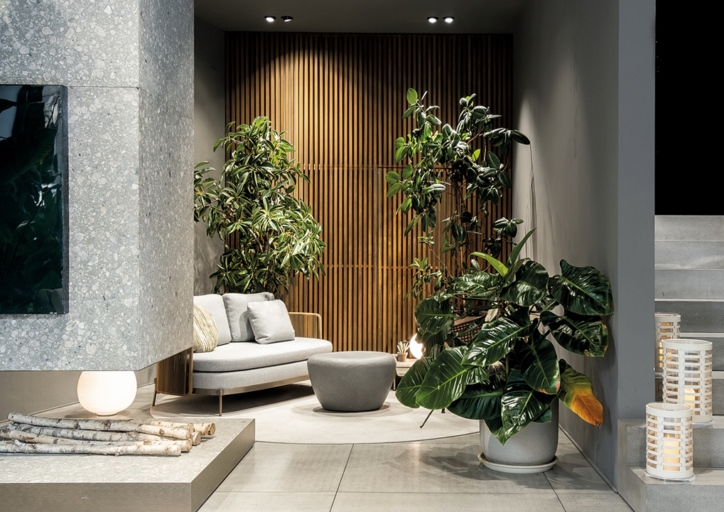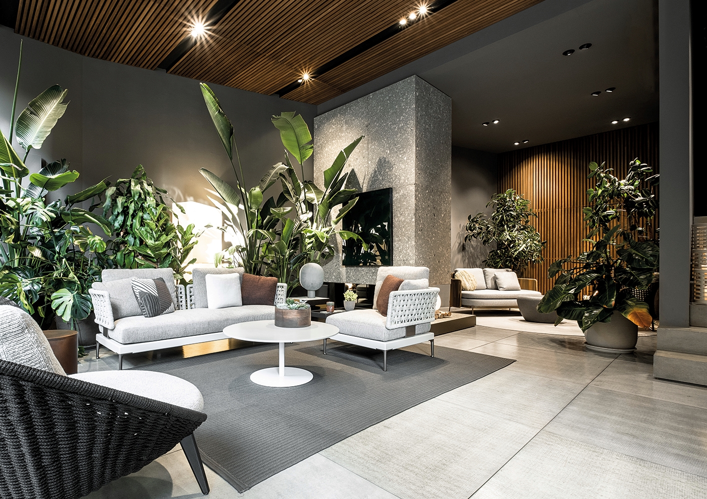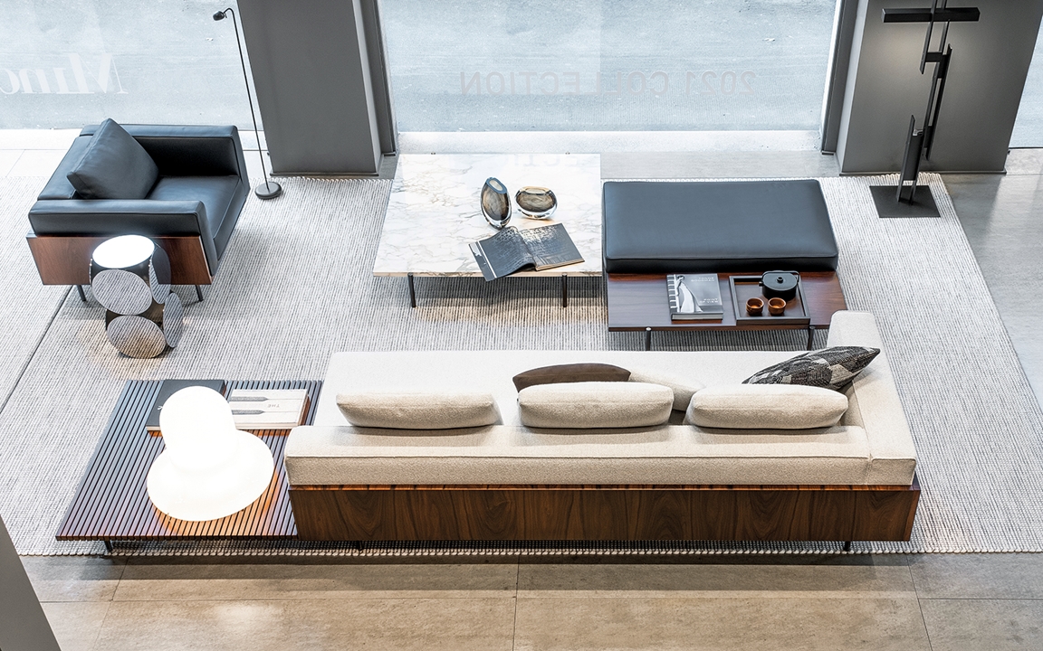 Zu den wichtigsten Protagonisten der Indoor-Kollektion gehörten das modulare System Roger und die Familie von Sitzmöbeln Belt von Rodolfo Dordoni sowie einige Einrichtungselemente der Familien Brasilia und Superquadra von Marcio Kogan / studio mk27. Außerdem zu sehen war eine umfassende Auswahl von Kleinmöbeln und Accessoires. Der für die Outdoor-Kollektion vorgesehene Bereich erhielt seine Dynamik dagegen durch das modulare System Patio und den Sessel Lido Cord Outdoor von GamFratesi. Dazu gesellte sich der Sessel Torii Nest Outdoor von nendo.