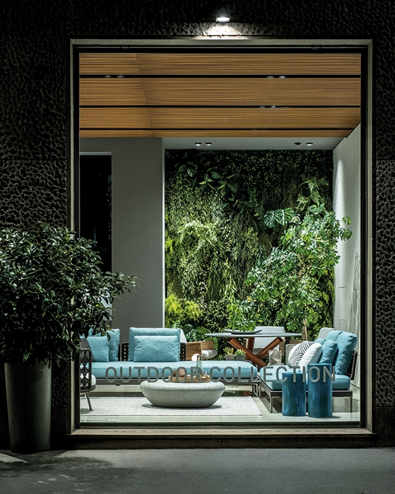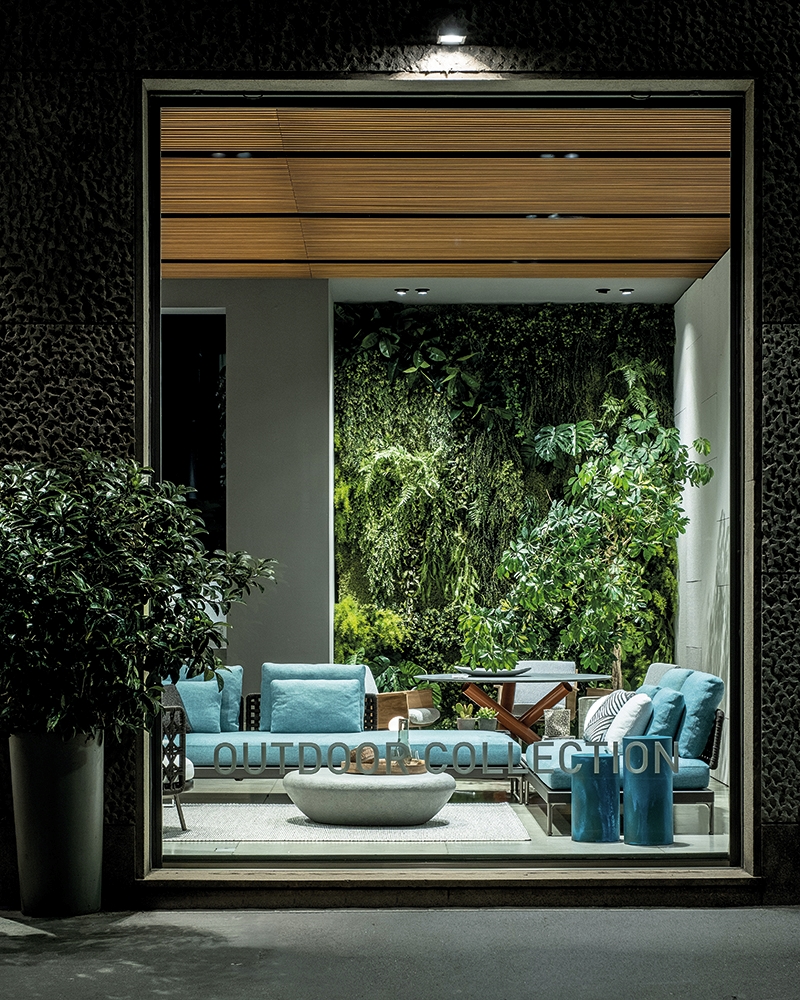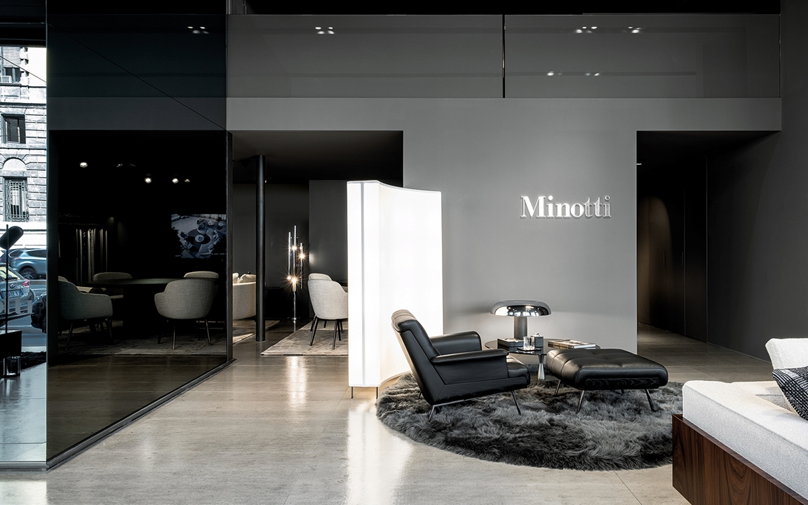 Die Schaufenster mit Blick auf die Via Larga präsentierten eine authentische Interpretation des Wohnkonzepts von Minotti. Sie ließen den Blick frei auf eine fließende Abfolge von Lösungen für den Innen- und Außenbereich und es gelang so, die kreativen Identitäten und kulturellen Matrizen der verschiedenen Designer innerhalb eines einzigen Minotti-Projekts zum Ausdruck zu bringen.