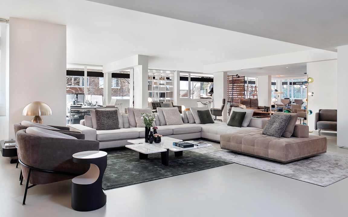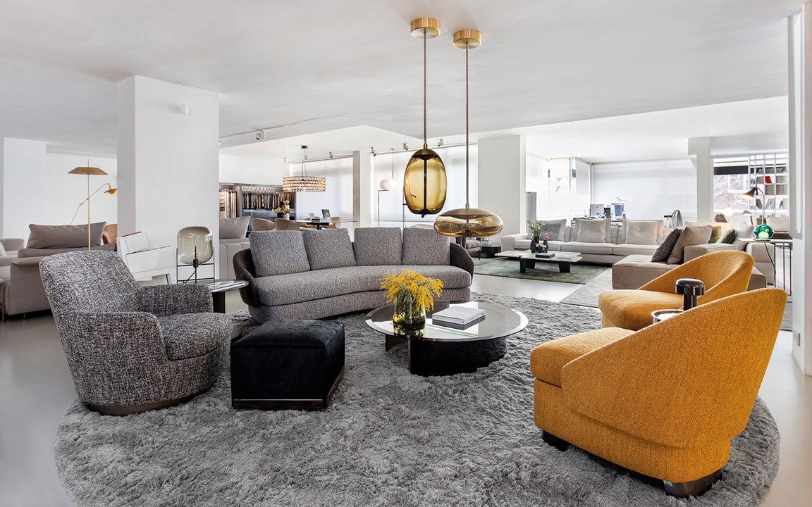 Eine Erzählung, die in der sorgfältigen Auswahl von legendären Möbeln von Rodolfo Dordoni Ausdruck findet, die in den Schaufenstern von MINIM Barcelona, seit Jahren in dieser Stadt Referenz für modernes Design, in Szene gesetzt wurden. Von den Sesseln Suitcase Line und Delaunay Quilt, Varianten 2019 der jeweils 1997 und 1998 am Anfang der erfolgreichen Zusammenarbeiten entworfenen Sessel, bis zum Sofa und den Sesseln Aston, zusammen mit dem Sitzprogramm West, einem der charakteristischsten Stücke der 2019 Collection.