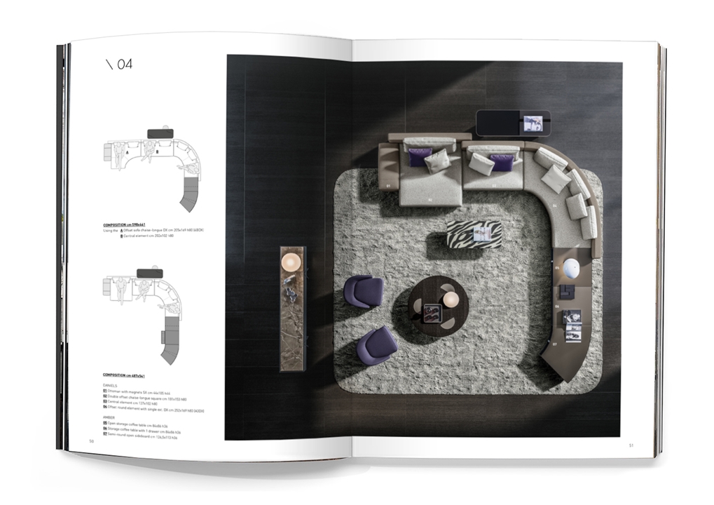 Wandelbar in unendlichen Variationen verleiht das System Wohnbereichen eine starke visuelle Wirkung, wobei die regelmäßigen Kurven und Ellipsen die Linearität der Konfiguration unterbrechen und ihr einen dynamischen und zeitgenössischen Stil verleihen.