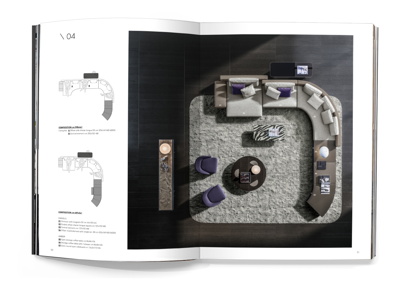 Innovativ und authentisch originell erlangt Daniels seine vollendete Ausstrahlung in Kombination mit den Beistelltischen-Behältern Amber. Daniels ist das Ergebnis eines ausgefeilten Projekts, dessen Ziel es war, auf sehr unterschiedliche Räumlichkeiten und Architekturen ähnlich wie bei einem Landschaftsbauprojekt einzugehen.