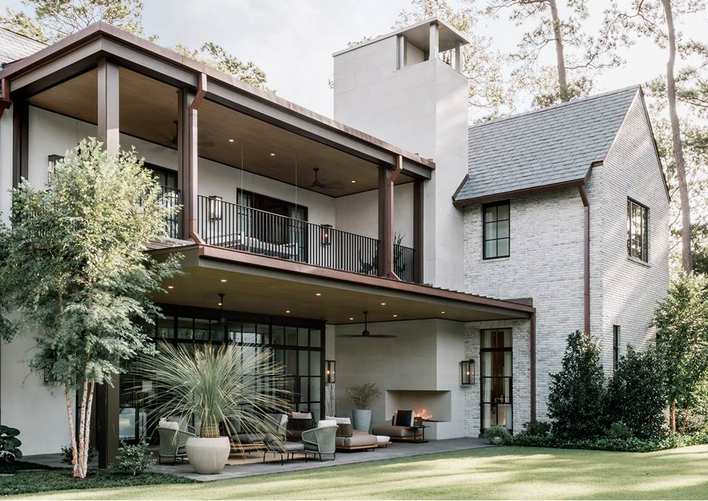 River Oaks Manor liegt im traditionsreichen Viertel River Oaks im Zentrum von Houston und ist von einem ein Acre großen Grundstück umgeben, auf dem autochthone Pflanzen aus Texas angebaut werden. Es handelt sich um einen zweistöckigen Landsitz mit Tympanon des 20.Jahrhunderts, der von einem Park mit herrlichen Pinien, Wiese und Swimmingpool umgeben ist. Die Grünfläche wurde von dem Landschaftsarchitekten Johnny Steele aus Houston gestaltet, der seit fast 50 Jahren die Open-Air-Bereiche und Gärten berühmter Persönlichkeiten der Stadt plant. Die moderne Inneneinrichtung wurde von Mary Lambrakos entworfen, die das gleichnamige Einrichtungsbüro gegründet hat und ein neues Talent des texanischen Designs ist.