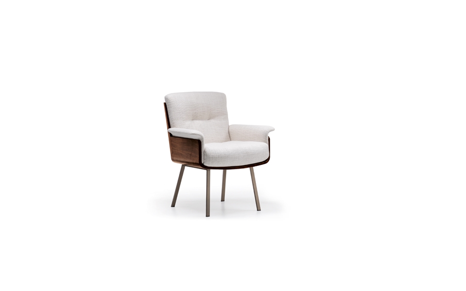 Seat and backrest cushions are in channelled goose down and undergo routine sanitization as specified in EC Regulation No. 1069/2009 (Assopiuma Gold Label certified), with core insert in high-resilience, variable-density polyurethane foam. Upholstery for the armchairs is always, in both the leather and in the fabric-upholstered versions, embellished with top-stitching, except for the EXECUTIVE version, which always has, in both the leather and in the fabric-upholstered versions, a light quilted motif accompanied by top-stitching. The seat and backrest cushions are joined by a zipper.