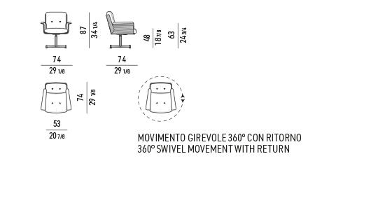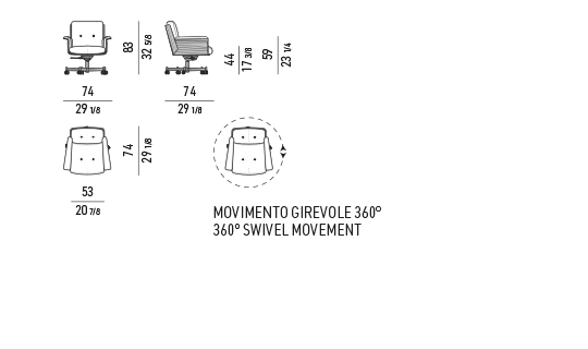 ARMCHAIRS WITH BASE AND CASTERS (cm 74x76 H91 / 74x74 H83)