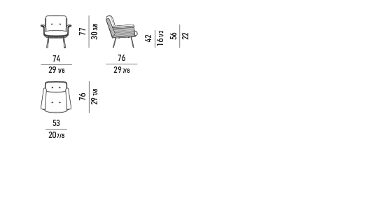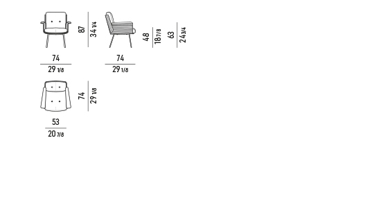 Armrest, seat and backrest cushion upholstery, in both fabric and leather, is completely removable. Unscrew armrests from the structure to remove the upholstery.