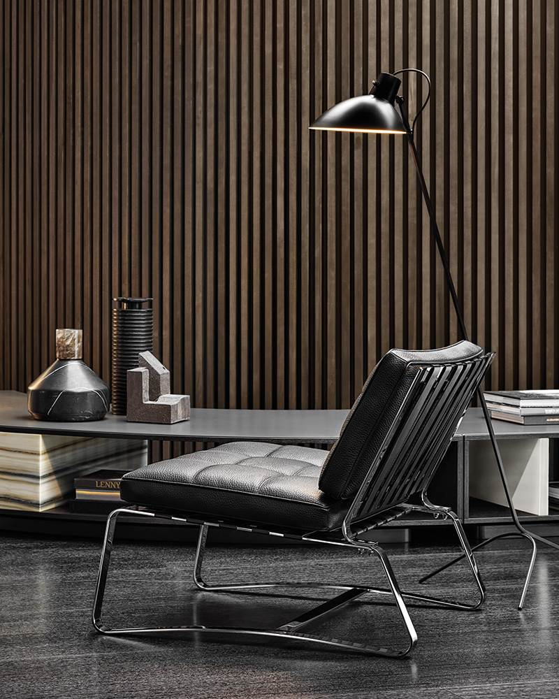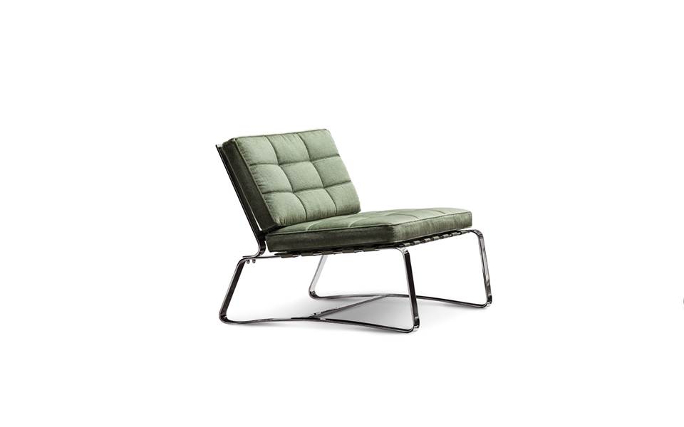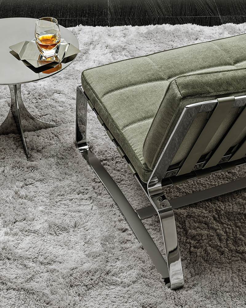 Delaunay Quilt, with its chrome finished frame and leather upholstery in colours that open new horizons, effortlessly blends in with the Seventies spirit that guides the 2019 Collection.