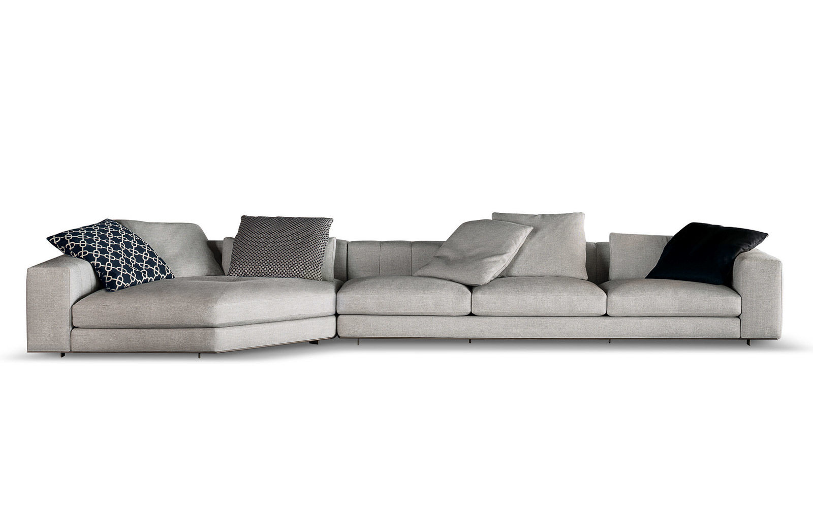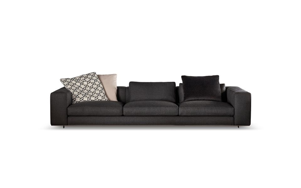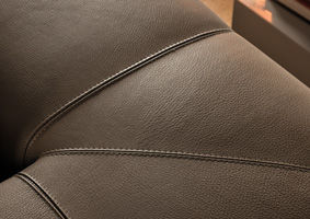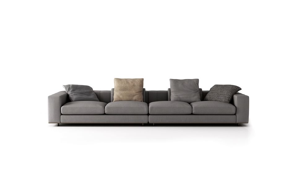 Prepare to get cozy on a sofa that offers the pleasant sensation of inviting warmth and comfortable softness. The seat cushions of the Freeman “Duvet” elements have a core insert in polyurethane, wrapped in Memory Foam padding and topped with a layer of soft down. For an overall effect of extreme softness, the entire structure of the Freeman “Duvet” is wrapped in a heat-sealed fiber covering. The armrests and backrests are embellished with a sophisticated stitching motif that is an eloquent expression of the company’s tailoring skills. The pieces in fabric are joined with a strip of bronze-colored eco-leather with a double-stitched pattern that rhythmically emphasizes the volume of the elements. To promote good posture during reading and relaxing, the Freeman “Duvet” elements can be outfitted with a practical headrest designed to provide just the right support, along with the lumbar cushion. Crafted with a metal structure, covered in polyurethane foam, the upper part is padded and finished with elegant stitching. To further enhance the sensation of comfort, the backrests in the Freeman system are outfitted with comfortable lumbar cushions as well as pillow-soft back cushions.