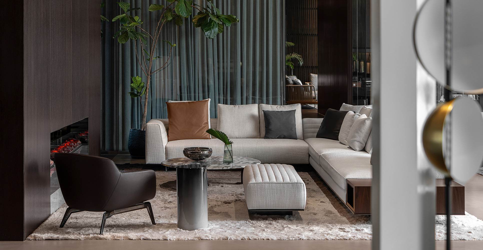 The modern architecture of the Minotti Chengdu by LHC flagship store, located in the elegant financial district of the dynamic Chinese metropolis, houses a new setting for the indoor and outdoor furnishing pieces of the Minotti collection.