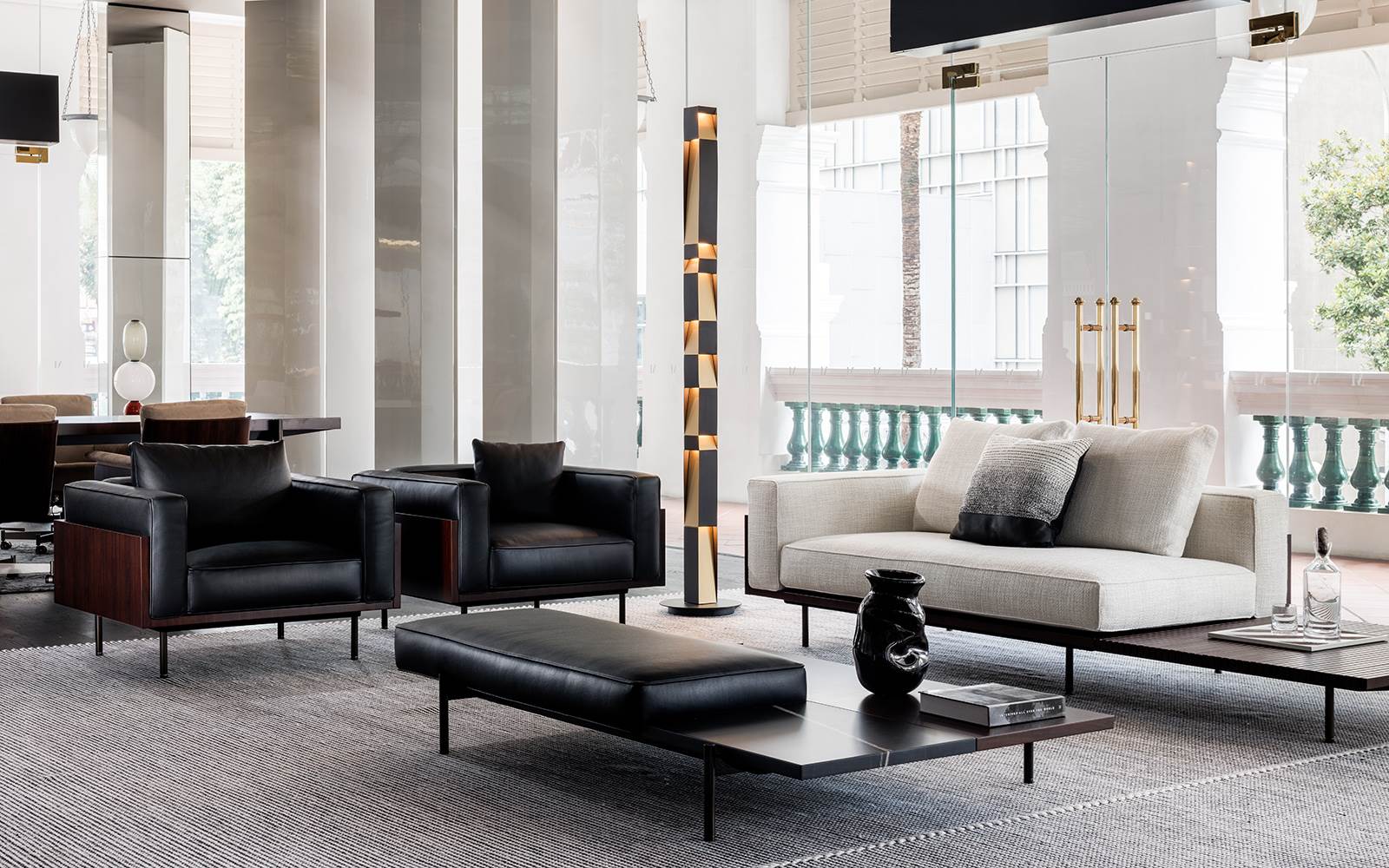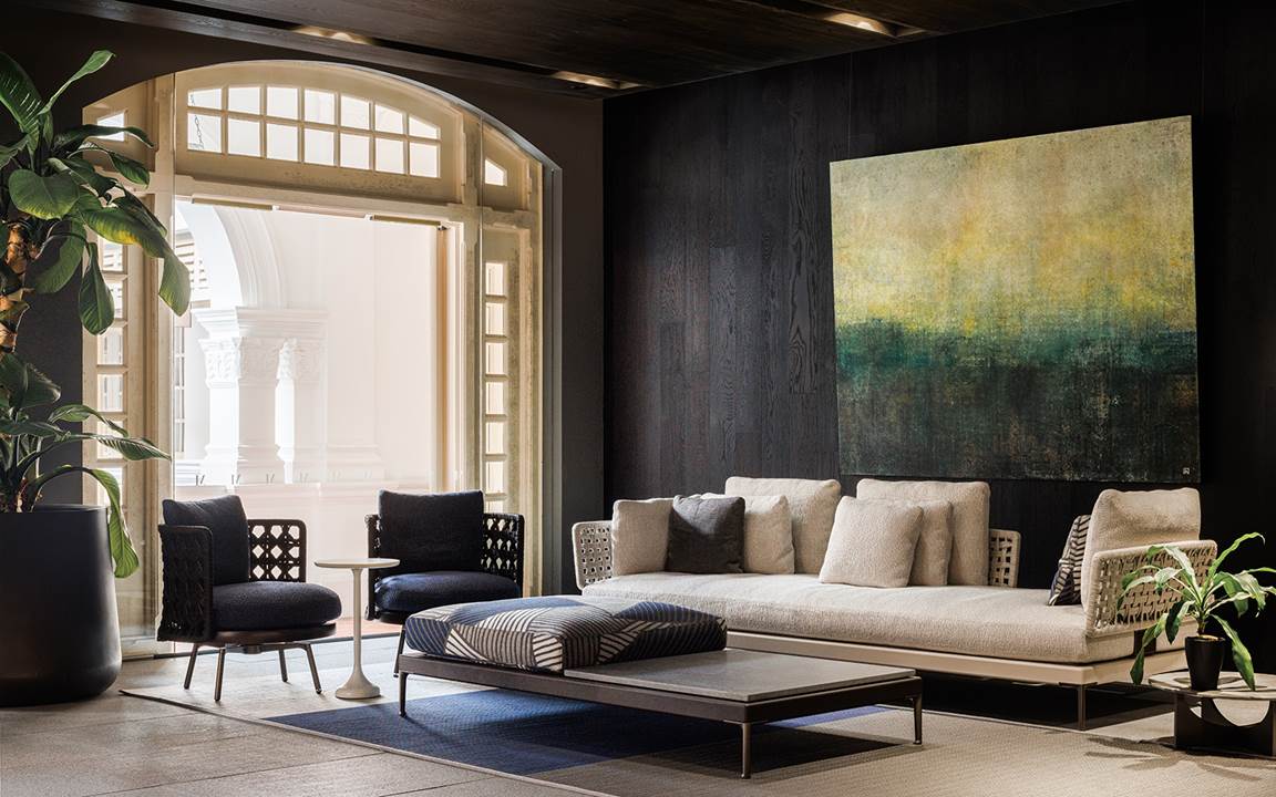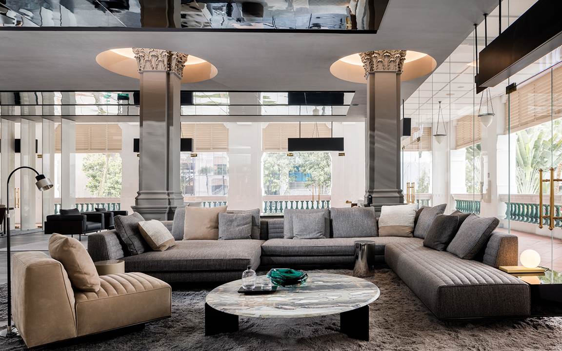 Inside the famous Raffles Hotel, an elegant example of late 19th century colonial architecture, in the heart of the city's financial district, the Minotti Singapore by Marquis Interior flagship store renews and opens its doors to the furnishing pieces of the most recent collections.