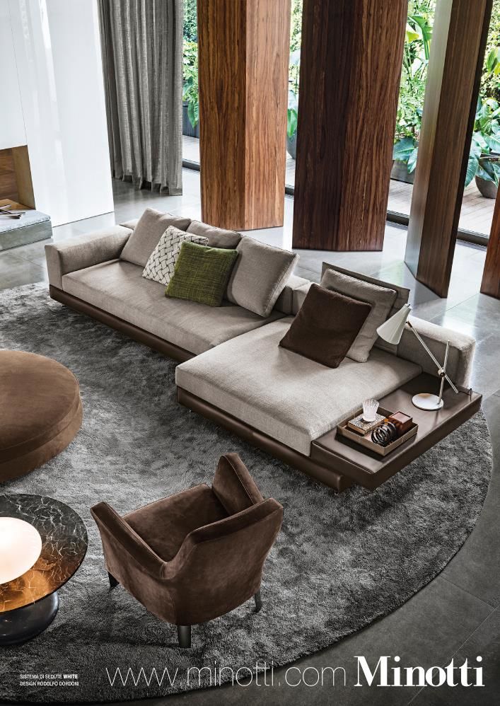 The unique features of the White seating system are clear heirs to the timeless elegance of the Minotti style, while introducing a highly innovative concept.
