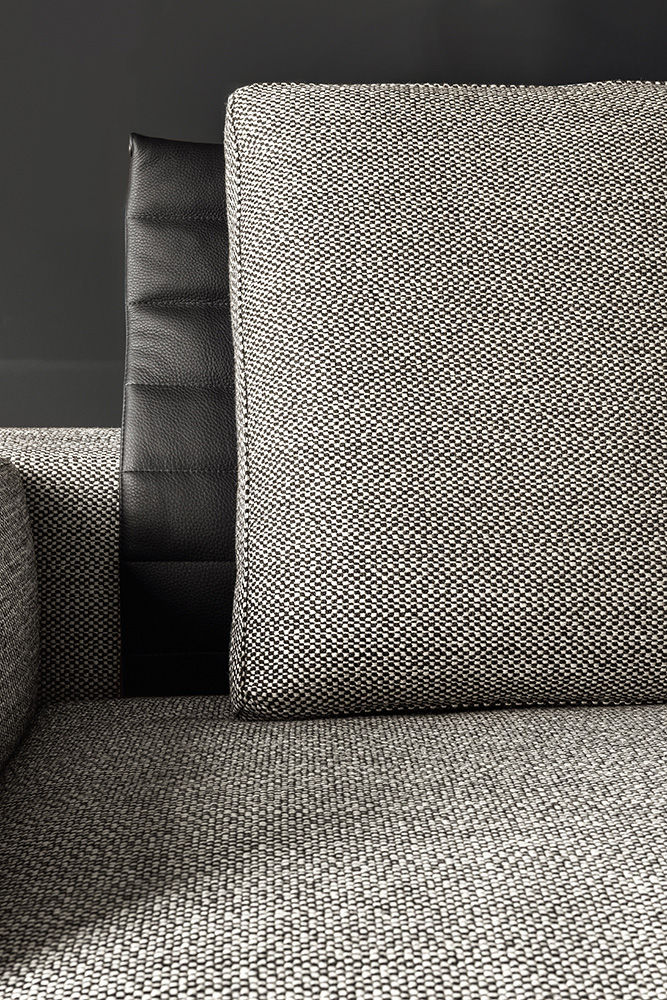 Structure and proportions usher in a new architecture of the sofa. White seems to be a composite of perfectly balanced shapes. The repetitive overlapping of horizontal lines forms a highly distinctive aesthetic pattern that is further emphasized by the use of several different materials.