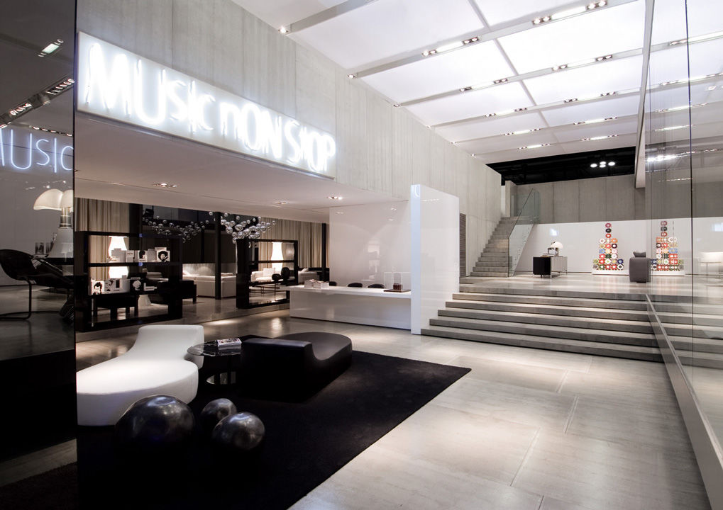 ... música, rock, incluso cuando el estéreo está apagado y la música se encuentra dentro de nosotros... «Non Stop Music»... colección 2007 coordinada por Rodolfo Dordoni. Un diseño riguroso, contemporáneo, en perfecto equilibrio entre estilo moderno y clásico. Sus colores son el negro y el blanco, con toques de gris y plata. Una colección concebida para contribuir a armonizar un estilo de vida sobrio y relajado con el caos multicultural del mundo actual.