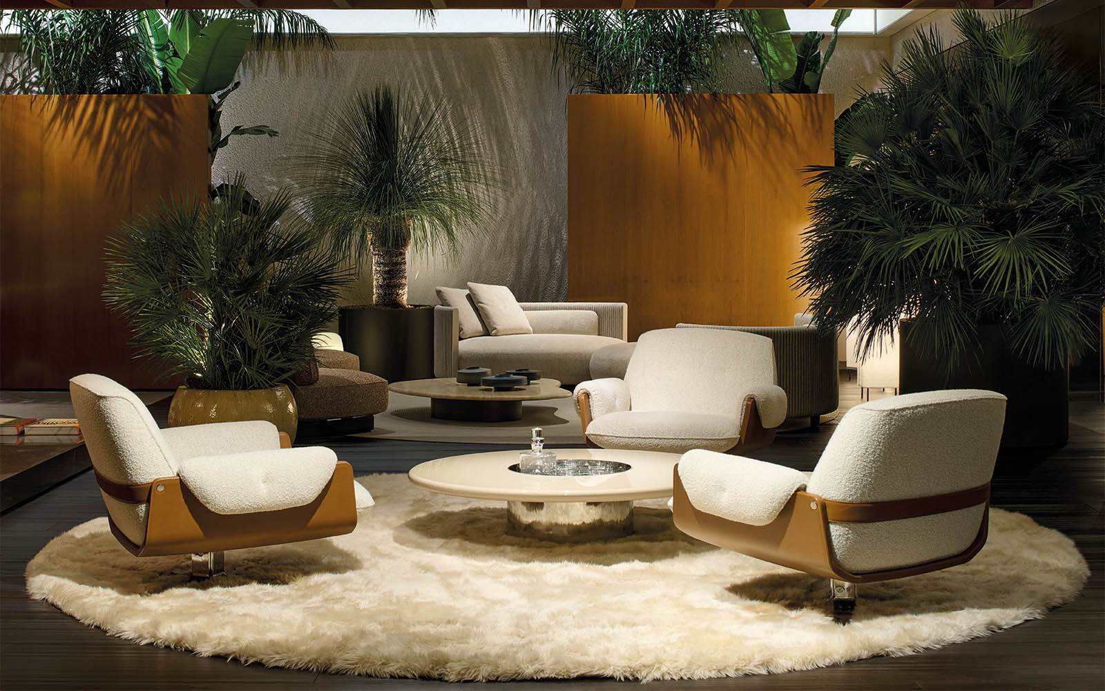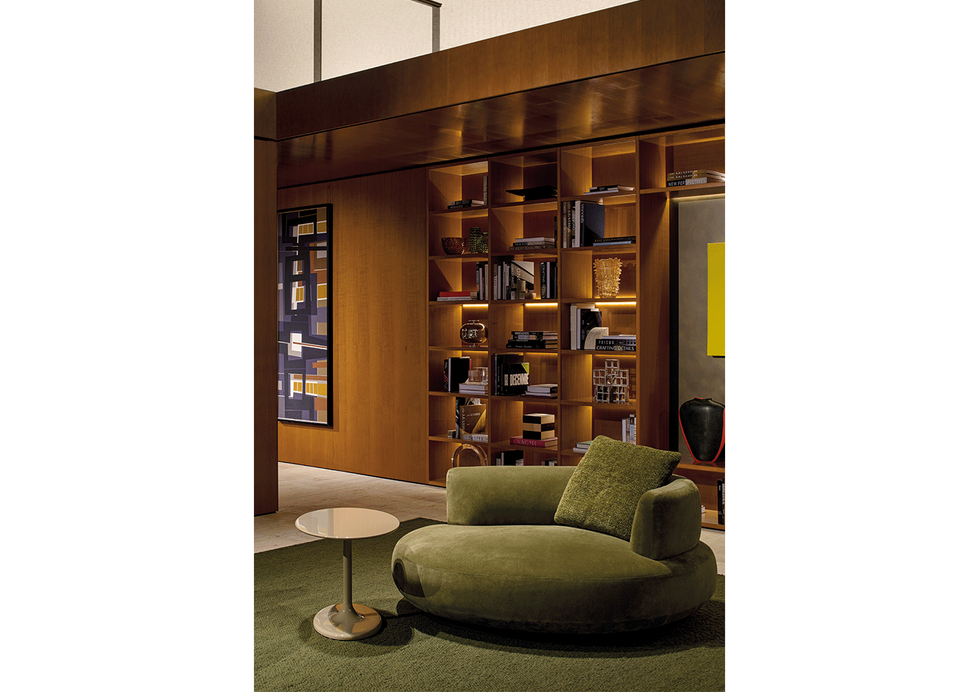 La estrella absoluta del espacio fue la 2025 Collection, síntesis de investigación y continuidad, que se dirige a las nuevas generaciones sin dejar de ser coherente con la elegancia atemporal del lenguaje Minotti.
