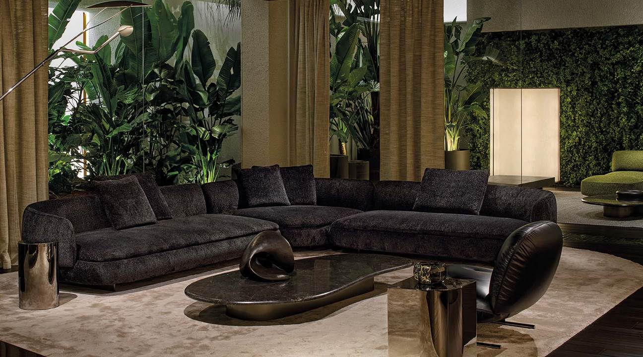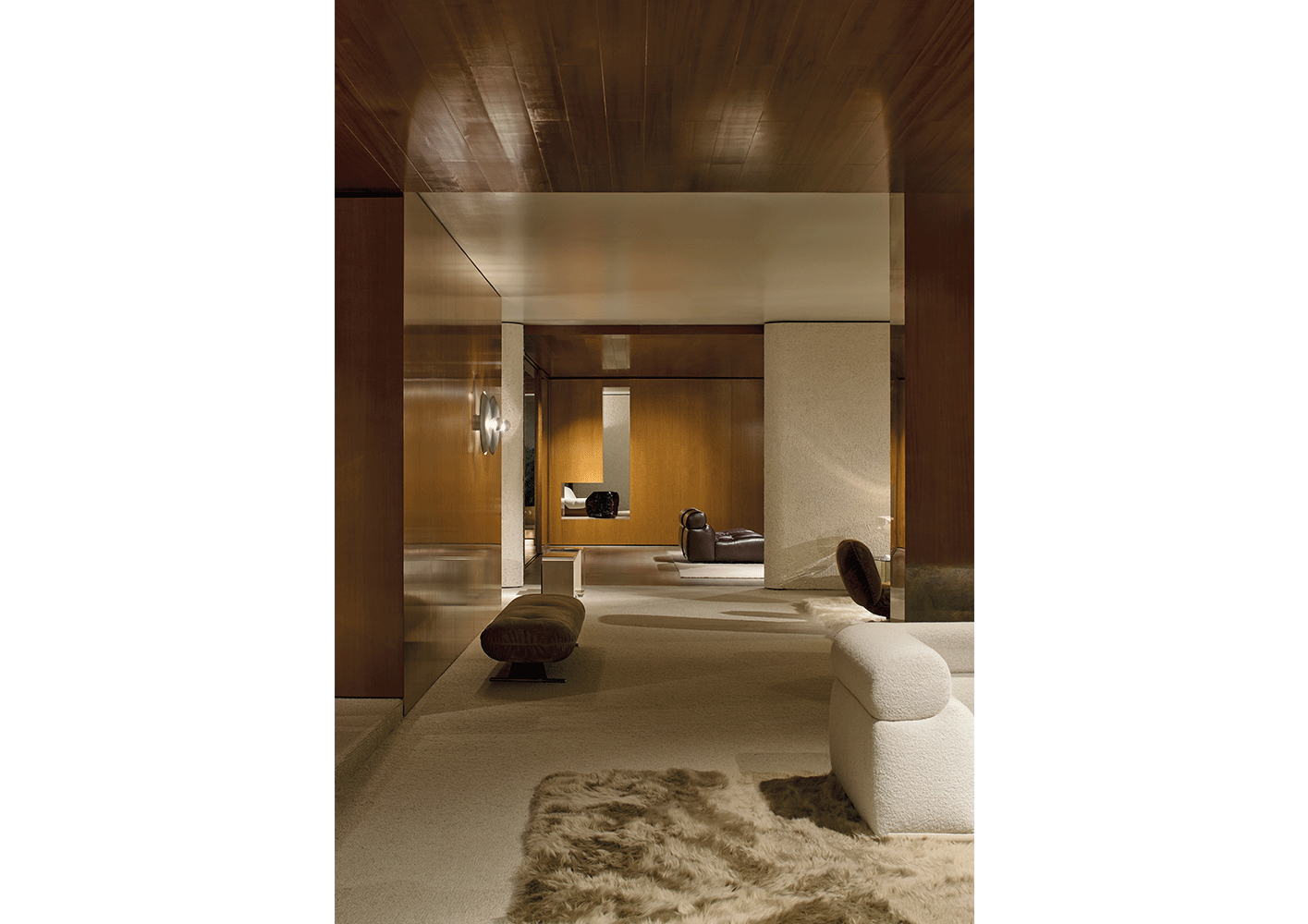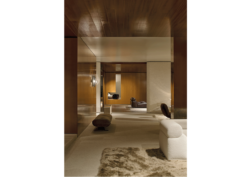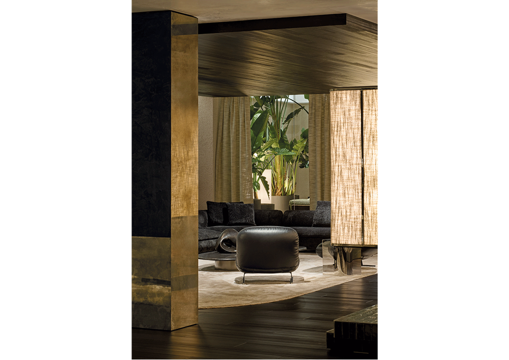 Realizado por Minotti Studio, el proyecto expositivo fue un lugar escenográfico realzado por un sofisticado juego de materiales, texturas y acabados, que evocan diferentes ambientes, enfatizadas por elementos naturales que amplifican su profundidad sensorial.